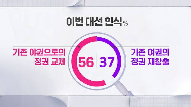 이번 대선에서 어떤 결과가 나오는 게 바람직하다고 보는지도 질문했는데, 기존 여권의 정권 재창출을 꼽은 사람이 37%, 기존 야권으로의 정권 교체를 답한 사람이 56%였습니다.