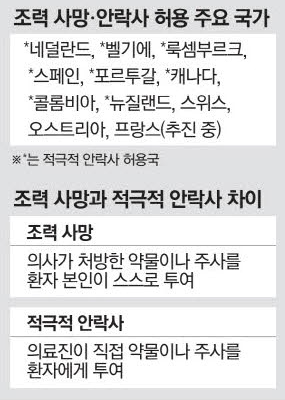 이번 법안은 심각하고 치료가 불가능한 질병이 상당히 진행돼 지속적인 신체적·심리적 고통을 겪는 환자가 직접 요청해 삶을 마감할 수 있게 허용하는 것이 주요 내용이다.