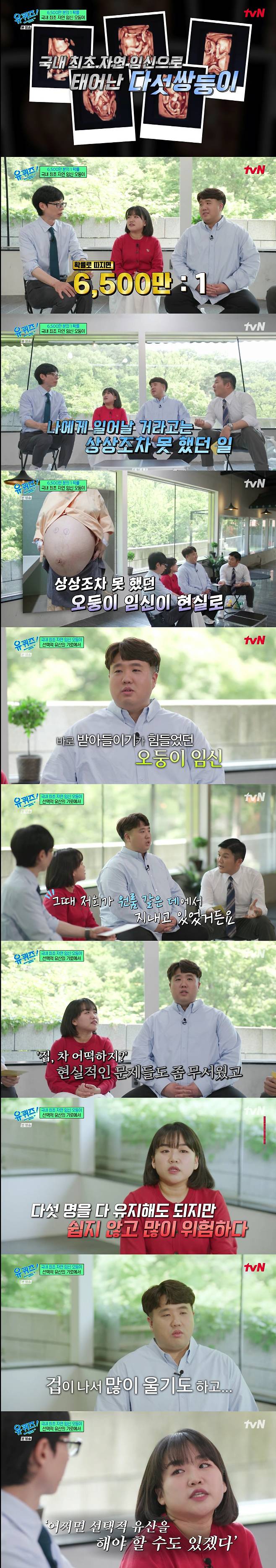 '오둥이 자연임신' 부부 "경제적 두려움에 매일 울어, 병원서도 '선택적 유산' 권유"('유퀴즈')[종합]