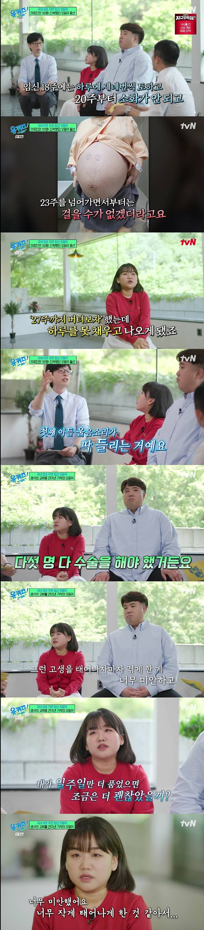 28일 tvN '유 퀴즈 온 더 블럭'에는 국내 최초로 자연 임신을 통해 다섯 쌍둥이를 출산한 사공혜란·김준영 부부가 출연해 출산 과정부터 현실적인 육아 이야기까지 진솔하게 전했다.