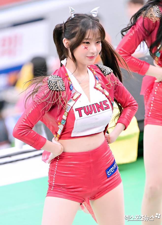 (엑스포츠뉴스 잠실, 김한준 기자) 28일 오후 서울 송파구 잠실야구장에서 열린 '2025 신한 SOL Bank KBO리그' 한화 이글스와 LG 트윈스의 경기, 이주은 치어리더가 멋진 공연을 선보이고 있다.