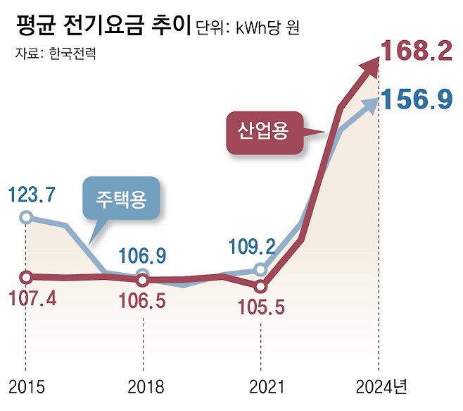 산업용 전기료 3년새 59% 올라… 가정용 대신 인상 ‘에너지 포퓰리즘’