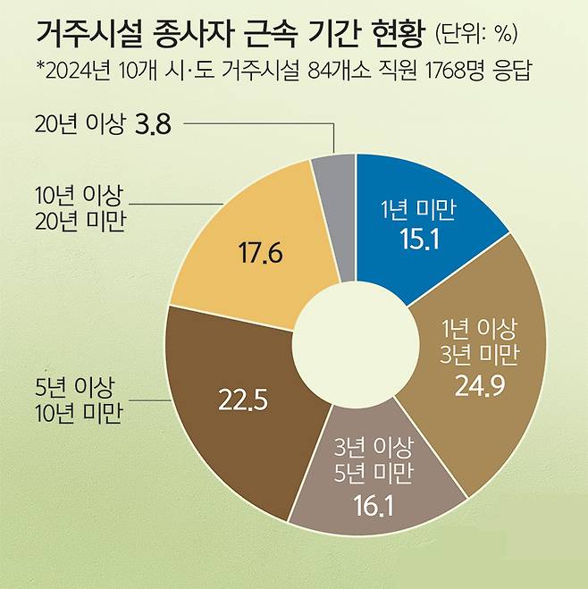 시설 측도 채용난에 허덕이고 있다. 경기도의 한 거주시설 원장인 이모씨는 “채용 공고를 올해 7번 냈다”며 “현재 전체 직원 40명 중 50대 이상이 19명일 정도”라고 했다.