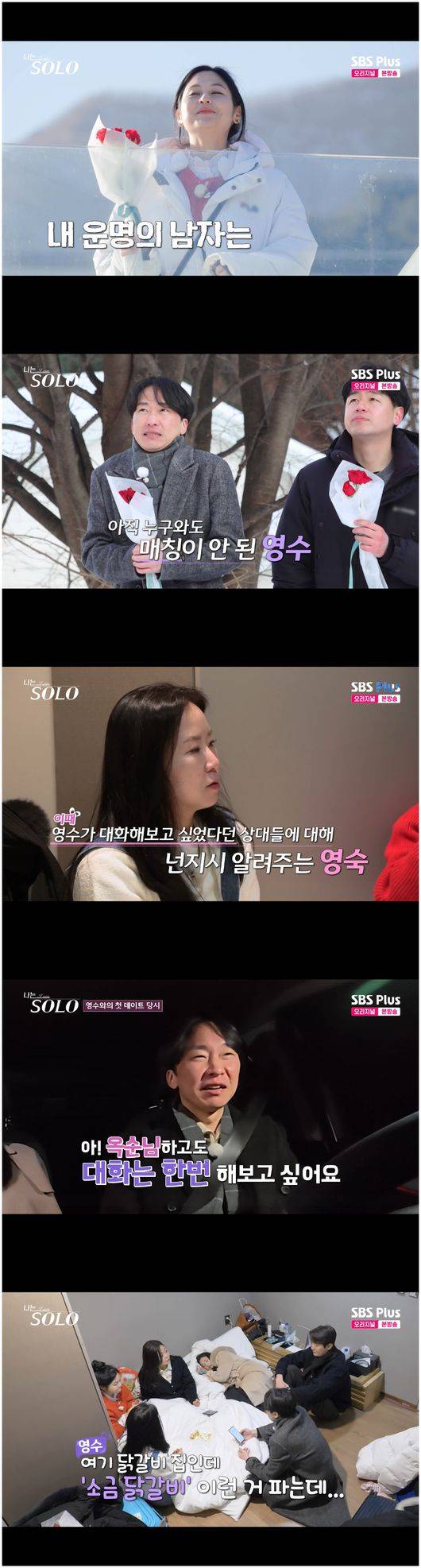 약간의 변수라면 영식이었다. 영호와 영식이 순자와의 랜덤데이트에 확정됐던 것이다. 영호는 “저는 두 번째 다대일이다. 이제 좀 속상하다”라며 허허롭게 웃었다.