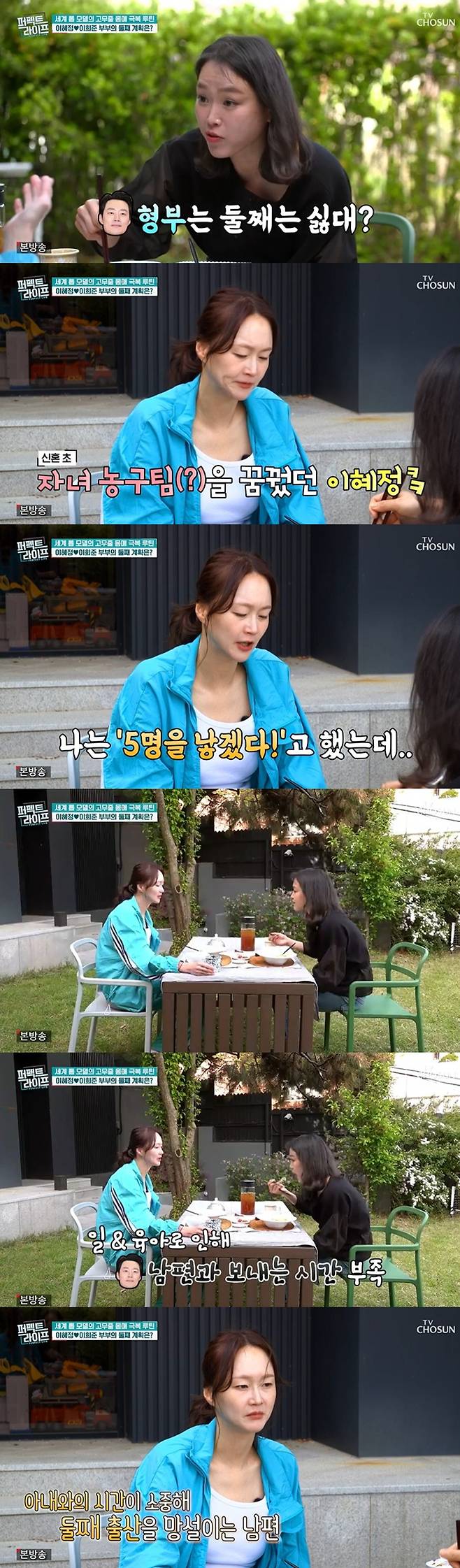 이혜정은 "처음에 농구단 만들려고 했다. 난 5명을 낳겠다고 했는데 첫째를 키우다보니 시간이 이만큼 지났다"고 운을 뗐다.