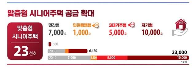 세대별 독립생활 가능 구조의 ‘3대 거주형 시니어 주택'(5000가구)도 공급한다. 3대가 함께 거주하며 독립된 생활을 할 수 있는 분리 구조의 주택 공급을 추진한다.