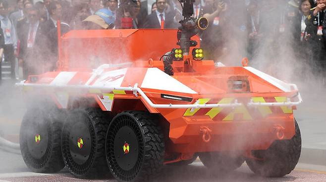 유의연 현대로템 방산글로벌영업팀 책임매니저는 "소방대원을 투입하기 어려운 화재 현장에 먼저 들어가 진입로를 개척하고 현장 상황을 파악하는 데 주로 쓰일 것"이라고 설명했습니다.
