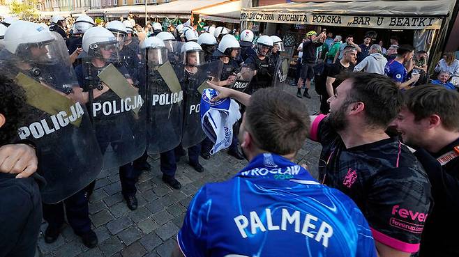 ▲ 폴란드 경찰과 대치중인 첼시 팬