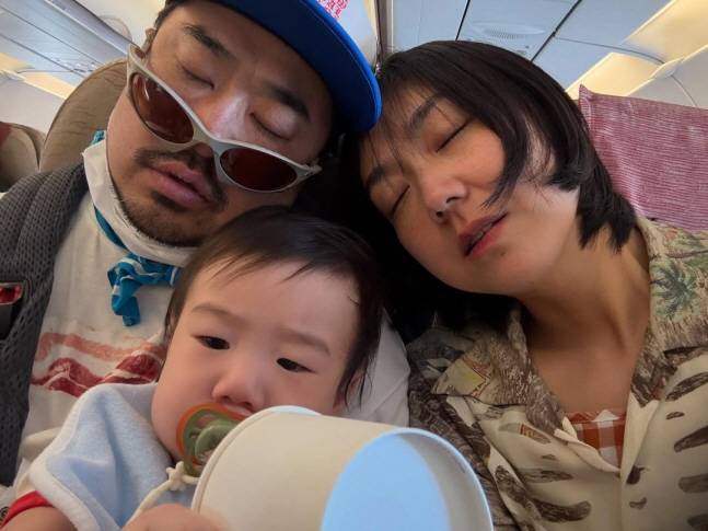 28일 강재준은 자신의 SNS를 통해 "현조와 첫 비행기 제주도"라는 글과 함께 세 가족의 근황이 담긴 사진을 공개했다. 사진 속 강재준과 이은형은 피곤한 기색으로 서로 기대 눈을 감고 있는 반면 무릎 위에 앉은 현조 군은 또렷하게 카메라를 응시해 웃음을 자아냈다.