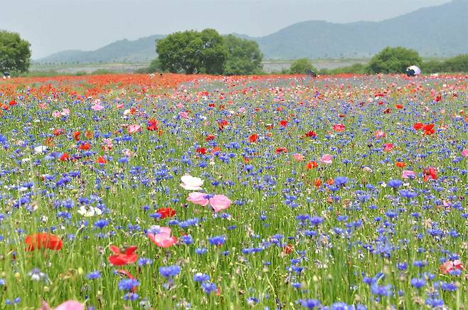 | ▲ 악양둑방 아래 13 ha에 달하는 너른 들판에 꽃양귀비가 만개했다. |