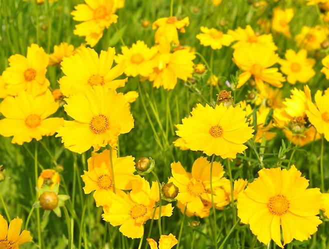 | ▲ 국화과에 속하는 여러해살이 식물인 금계국은 번식력이 좋고 척박한 땅에서도 잘 자란다. |