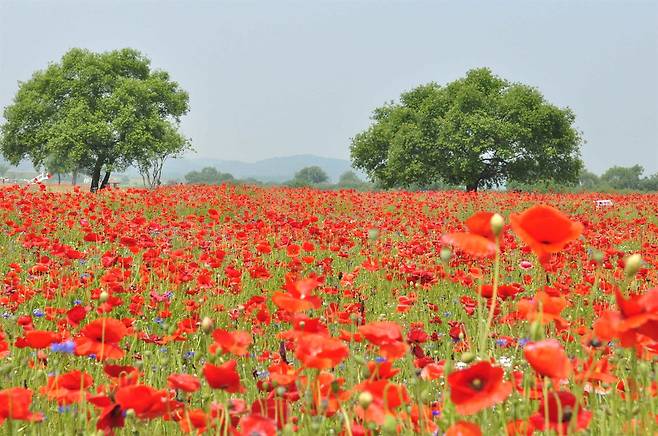 국화과의 여러해살이 식물인 금계국은 척박한 땅에서도 잘 자라고 병충해에도 강하여 관리가 쉽다고 한다. 언덕 아래 꽃양귀비밭으로 갔다. 13ha에 달하는 너른 들판이 온통 발갛다. 아름다운 꽃을 보며 제대로 호사를 누렸다.