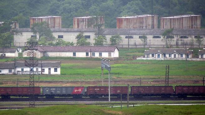 ▲ 2014년 촬영된 두만강역 인근의 북한 화물 열차