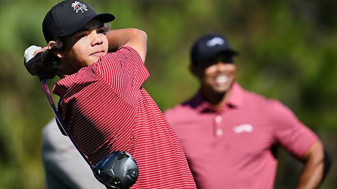 ▲ 타이거 우즈(오른쪽)와 그의 아들 찰리 우즈