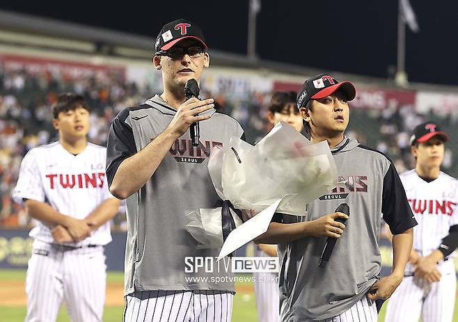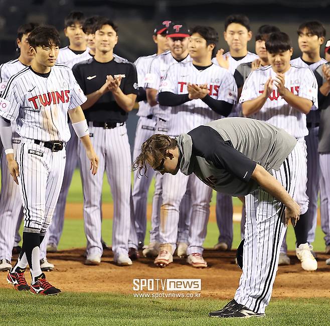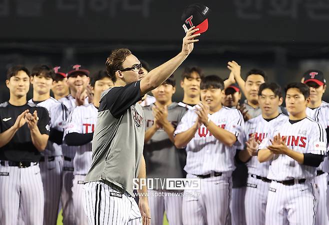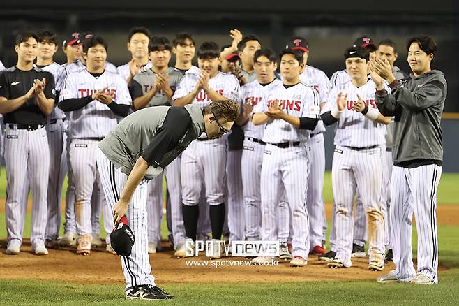 [스포티비뉴스=잠실, 곽혜미 기자] LG의 따뜻한 배웅에 떠나는 외국인 선수도 진심으로 화답했다. 코엔 윈은 마지막 순간, 허리를 깊게 숙인 '한국식 인사'로 감사의 마음을 전했다.