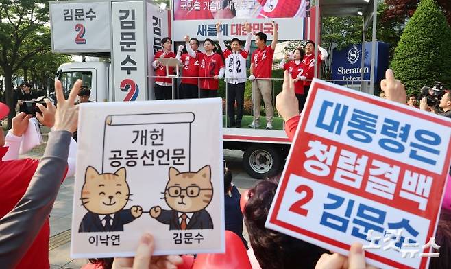 인천 송도에서 지지 호소하는 김문수 대선 후보