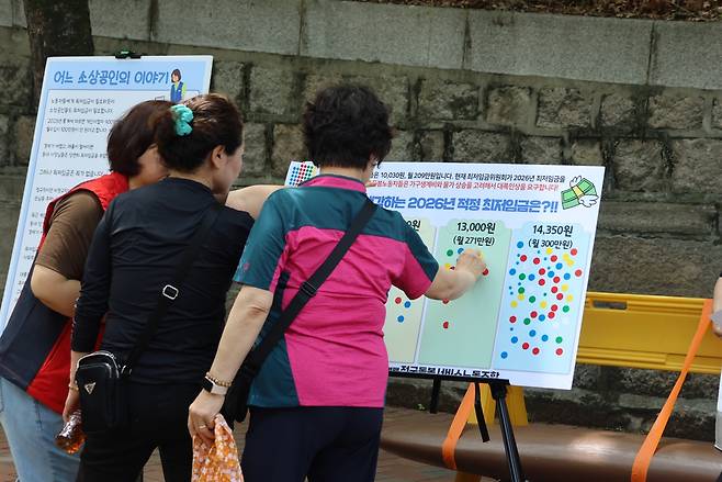 | ▲ 서비스연맹 최저임금 오픈마이크 행사 서비스연맹은 매주 수요일 최저임금을 주제로 행사를 열어 시민 참여를 받고 있다. |