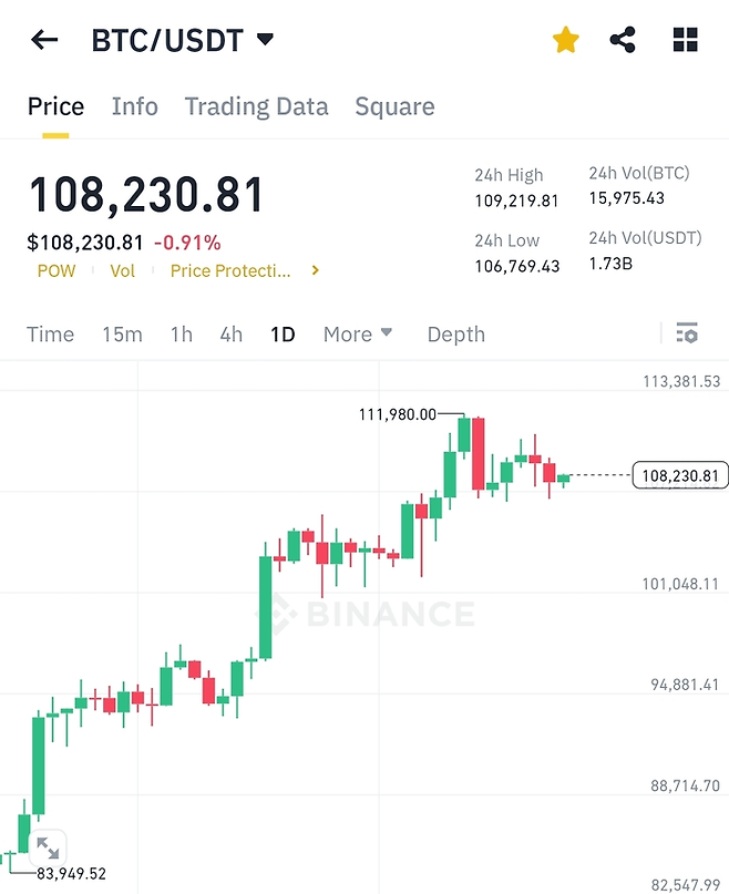 비트코인은 지난 22일 11만1980달러를 기록하며 역대 최고가를 경신한 뒤 10만9000달러 아래에서 횡보하는 흐름을 보이고 있다.
