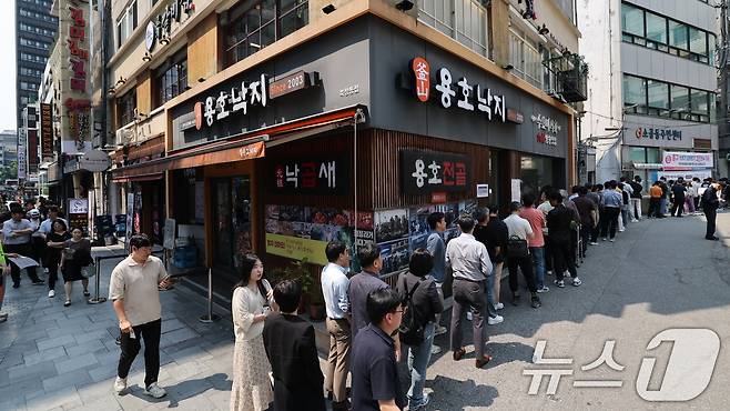 (서울=뉴스1) 오대일 기자 = 제21대 대통령선거 사전투표 첫 날인 29일 서울 중구 소공동주민센터에 마련된 투표소에서 직장인들이 점심시간을 이용해 투표를 하기 위해 길게 줄을 늘어서 있다. 2025.5.29/뉴스1