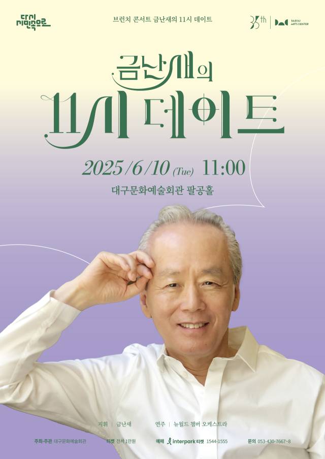 '금난새의 11시 데이트'가 오는 6월 10일(화) 오전 11시 대구문화예술회관 팔공홀에서 관객을 만난다.
