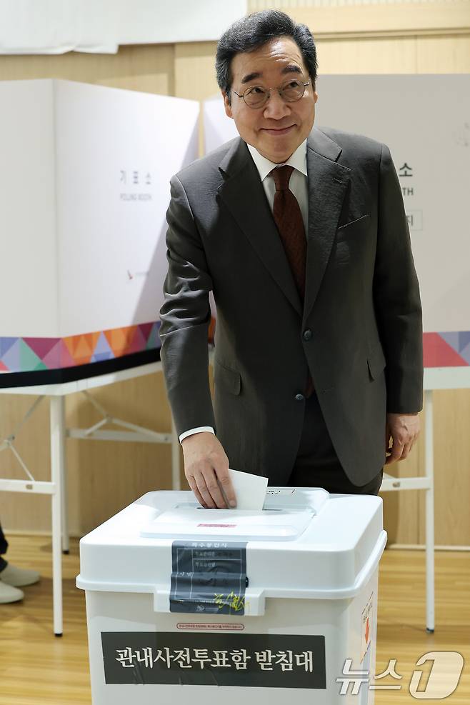 (서울=뉴스1) 이동해 기자 = 새미래민주당 상임고문인 이낙연 전 국무총리가 제21대 대통령선거 사전투표 첫날인 29일 오전 서울 종로구 사직동 주민센터에 마련된 사전투표소에서 투표를 하고 있다. 2025.5.29/뉴스1