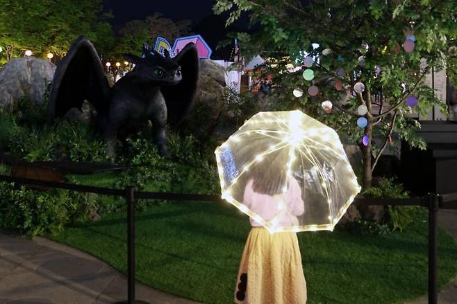 우산에 불을 켜니 비 대신 어둠을 막아주는 뭔가가 되었다. 제작자는 '별빛우산'이라 불렀다. 우산은 기능과 모양을 함께 말하는 이름이다. (서울 광화문)
