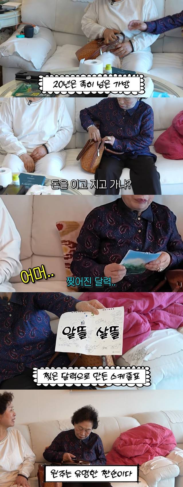 이어 선우용여는 전원주의 낡은 가방을 보며 "세상에, 이 오래된 가방. 돈을 이고 지고 가냐"며 답답한 심경을 드러냈다. 전원주는 가방 속에서 스케줄표를 꺼냈는데 그 정체는 찢어진 달력이었다. 직접 수기로 일정을 기록하는 알뜰한 생활 방식이 눈길을 끌었다.