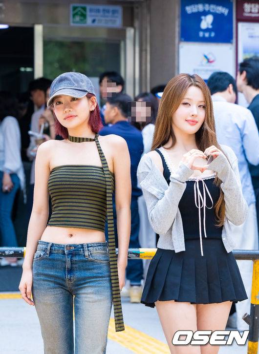 키스오브라이프 쥴리와 벨이 사전투표소로 향하며 포즈를 취하고 있다. 2025.05.29/ soul1014@osen.co.kr
