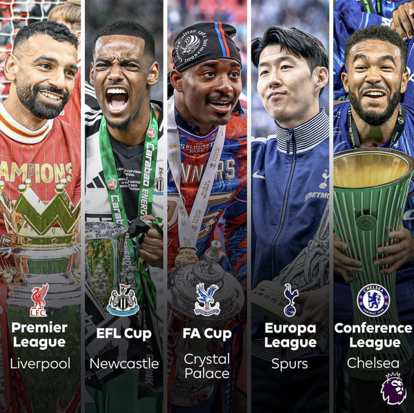 PL 사무국은 29일(이하 한국시간) “PL 역사상 처음으로 한 시즌에 5팀이 우승 트로피를 들어 올렸다”고 공식 발표했다. 대상은 리버풀, 뉴캐슬 유나이티드, 크리스탈 팰리스, 토트넘 홋스퍼, 첼시였다.