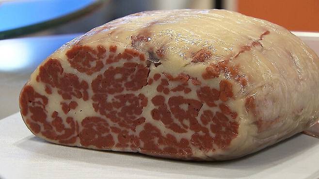 [주선태/경상국립대 축산과학부 교수 : 마블링이 많은 진짜 고깃덩어리 같은 것이고 또 하나는 각 부위별이 있지 않습니까. 등심, 안심, 채끝살 이런 식으로 다양한 부위를 모사해 낼 수 있다는 것입니다.]