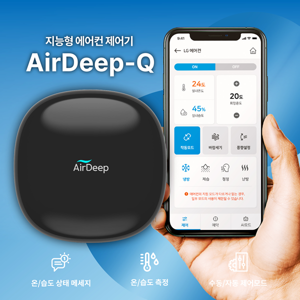 지능형 IoT 기반의 에어컨 원격 제어 솔루션 기업 에어딥(대표 김유신)이 개발한 '에어딥Q'가 조달청 혁신제품으로 선정되며 주목받고 있다. 에어딥Q는 구형 에어컨도 원격으로 제어할 수 있는 AI 기반 지능형 IoT 기기로, 실내 공기질과 에너지 효율을 동시에 개선하는 ESG 솔루션이다.