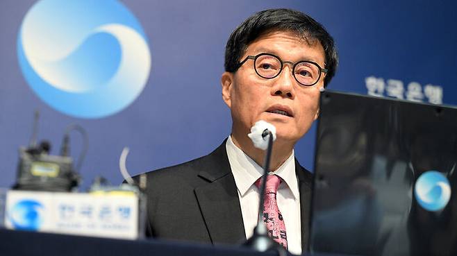 ▲ 이창용 한국은행 총재가 29일 서울 중구 한국은행에서 열린 금융통화위원회 금리 결정에 대한 기자간담회에서 발언하고 있다.