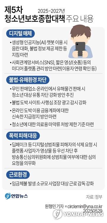 (서울=연합뉴스) 원형민 기자 = 정부는 29일 '제5차 청소년보호종합대책(2025∼2027년)'을 발표했다.