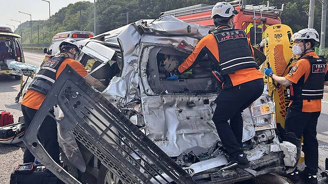 이 사고로 카니발 차량 동승자인 50대 여성 B 씨가 심정지 상태로 119 구급대에 의해 병원으로 옮겨졌으나 숨졌습니다.
