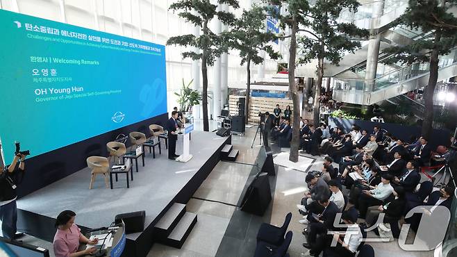 (서귀포=뉴스1) 오현지 기자 = 29일 제주 서귀포시 제주국제컨벤션센터에서 열린 제20회 제주포럼에서 '탄소중립과 에너지전환 실현을 위한 도전과 기회: 선도적 기후행동과 지속가능성' 세션이 진행되고 있다.
