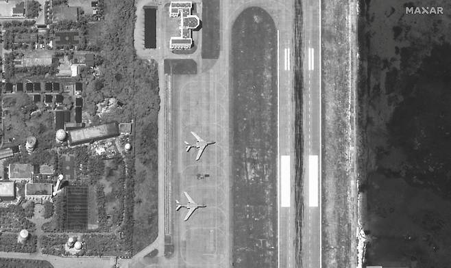 [우디섬에 착륙한 중국 H-6 폭격기 (맥사테크놀로지 제공·로이터=연합뉴스)]
