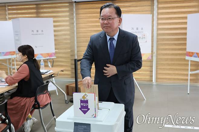| ▲ 김부겸 더불어민주당 중앙당 공동선대위원장이 29일 오후 대구 중구 대신행정복지센터에 마련된 사전투표소에서 투표하고 있다. |