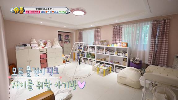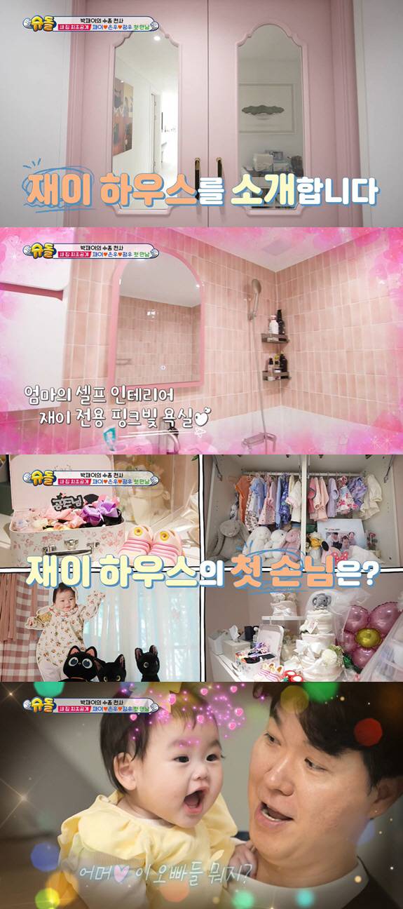 핑크색으로 꾸며진 재이의 방은 넓직한 내부로 눈길을 끌었다. 재이 전용 욕실까지 핑크색으로 가득했고, 박수홍은 "저 타일 하나하나 아내가 직접 발품 팔아 골랐다"고 설명했다.