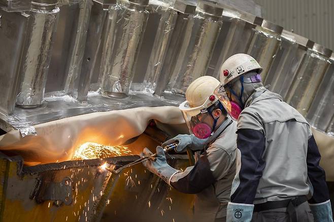 이날 만난 HD현대중공업 관계자들은 시장의 기대보다 이번 조선업 슈퍼사이클(초호황)이 일찍 저물고 있다고 판단했다. 영국 조선·해운 시황 분석기관 클라크슨리서치에 따르면 올해 1~4월 전 세계 선박 발주량은 1259만 CGT(선박 건조 난이도를 고려해 환산한 톤 수)로 2021년(2244만 CGT)의 절반 수준으로 감소했다. 이 추세라면 올해 연간 발주량이 3000만 CGT를 넘지 못할 가능성이 크다. 지난해 발주량(7250만 CGT)에서 절반 이상이 쪼그라드는 셈이다.