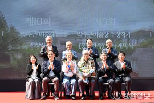 한편 이날 시상식에는 정창수 양구군의회 의장과 김석만 강원일보 이사 신철우 양구군의회 부의장, 손병진 양구문화원장, 이인범 박수근미술상 운영위원장, 박남희 박수근미술상 심사위원장, 박진흥 박수근미술관 명예관장, 최열 환경재단 이사장을 비롯한 박수근 화백 유족과 제8회 수상자인 노원희 작가 등이 참석했다.