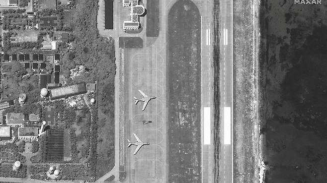 로이터가 위성사진 업체 맥사 테크놀로로지에서 입수한 지난 19일 위성사진에는 파라셀 군도 내 우디섬 비행장에 중국 폭격기 H-6 2대가 착륙해 있는 모습이 파악됐습니다.