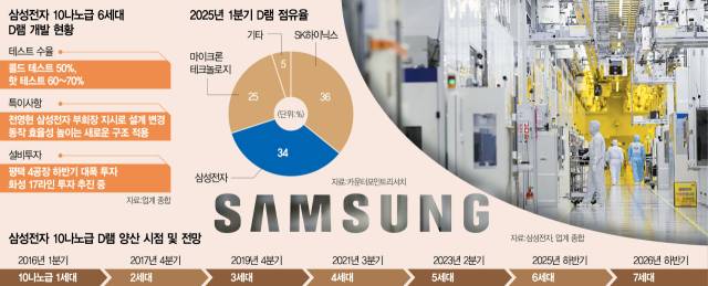 삼성전자는 연내 양산을 목표로 6세대 D램 후속 테스트를 진행할 계획이다. 업계 관계자는 “당장 판매를 해도 될 만큼 안정적인 성능을 갖췄는지 확인하려면 더 까다로운 테스트를 거쳐야 한다”고 전했다.