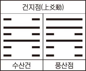 ‘모 방문객의 운수 여하’를 점해 ‘수산건(水山蹇) 상효동’을 득괘하고 점고하기를, 아래 건(蹇)괘는 ‘진흙 속에 빠져서 진퇴가 자유롭지 못한 운기’이다.
