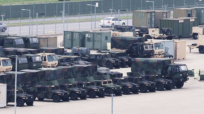 ▲ 미국 언론이 미국 정부가 주한미군 감축을 검토하고 있다고 보도한 지난 23일 경기도 평택시 캠프 험프리스에 차량이 대기하고 있다.