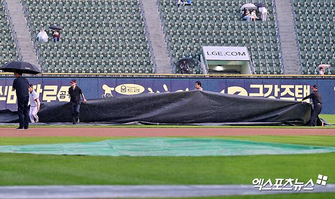 홈 팀 LG 구장 관리팀은 재빠르게 움직였다. 일단 마운드와 홈 플레이트를 방수포로 덮으면서 그라운드 컨디션 악화를 방지하기 위해 노력했다. 곧이어 내야 전체를 덮는 방수포도 설치됐다.