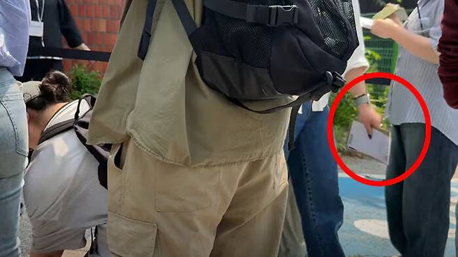 오늘 서대문구 신촌동 주민센터 사전투표소 출입구에서 생중계 방송을 하던 한 유튜브 채널에는 시민들이 투표소 밖에서 투표용지와 회송용 봉투를 들고 있는 모습이 포착됐습니다.