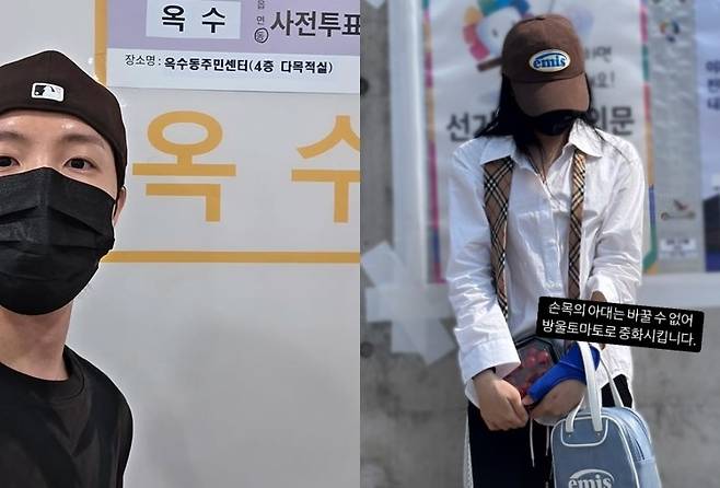 한편 사전투표에 나선 연예인들 대다수는 특정 정당을 연상케 하는 색깔의 옷차림을 피하는 분위기다. 방탄소년단(BTS) 제이홉은 모자부터 마스크, 옷까지 모두 '올 블랙'으로 갖춰입은 채 사전투표 인증샷으로 '색깔 논란'을 원천 차단했다.