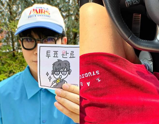 이승환은 파란색 셔츠에 파란색 캡모자를 매치한 사전투표룩을 선보이며 "다른 날보다 일찍 일어났네요. 평화를 일구고 경제를 일으킬 유능한 일꾼을 뽑는다는 일념에 가슴이 일렁여서"라고 덧붙였다.