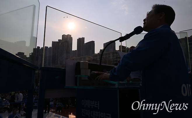 | ▲ 이재명 더불어민주당 대선 후보가 29일 서울 서초구 서울고속버스터미널 광장에서 열린 유세에서 시민들에게 지지를 호소하고 있다. |