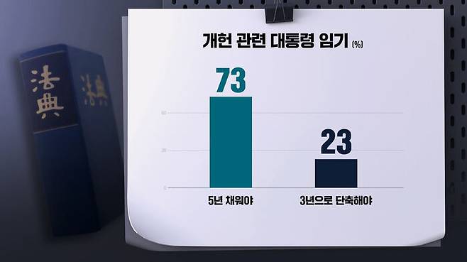 '현행 임기 5년을 채워야 한다' 73%, '임기를 3년으로 단축해야 한다' 23%로 각각 나타났습니다.